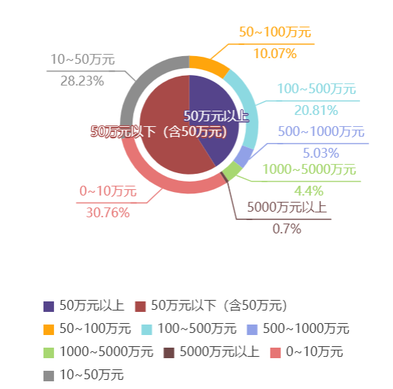 该类案件标的额普遍不高,主要集中在100万元以下。