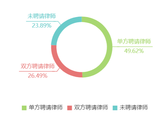 在所有小贷公司案件当中,只有单方聘请律师和未聘请律师的情况加在一起达到了将近73.51%,可见该类纠纷中律师代理的普及率并不高。