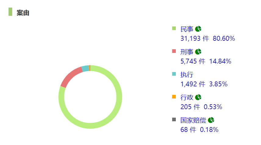 纠纷类型主要以民事案件为主,其次是刑事案件,其他类型的案件占比都比较低。